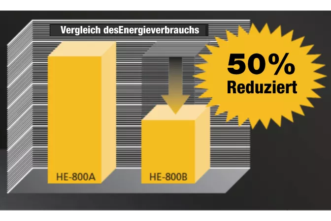 Hohe Energieeinsparung wurde druch ein Direktantriebssystem realisiert, das die Verlustleistung des Motors mit einem von Brother entwickelten Originalmotor auf ein Minimum reduziert. Die Leistungsaufnahme der Maschine ist ca. 50% geringer als beim Vorgängermodell HE-800A. Die ist die erstklassige energiesparende und umweltbewusste Maschine der Branche.