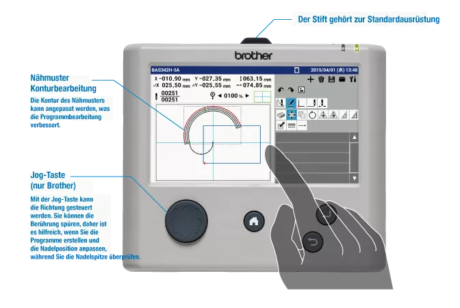 Die unüberwindlichen Vorbereitung wie Einfädeln des Oberfadens, Aufwickeln des Unterfadens können am Panel überprüft werden.