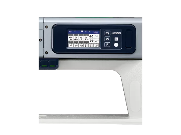- • Digitale Einstellung für eine verbesserte Reproduzierbarkeit der Nähvorgangs, hilfreich bei allen Wiederholungsaufträgen und bei der Wiederherstellung der Maschineneinstellungen.