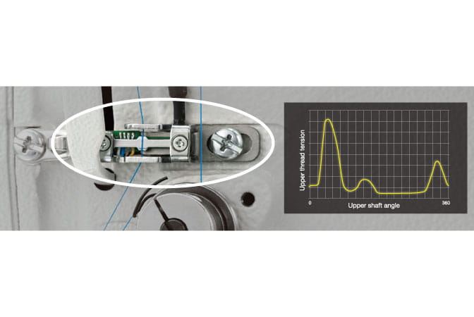 The Upper thred tension sensou ,skip stitch detection,thread breakage delection,thread tension monitoring.