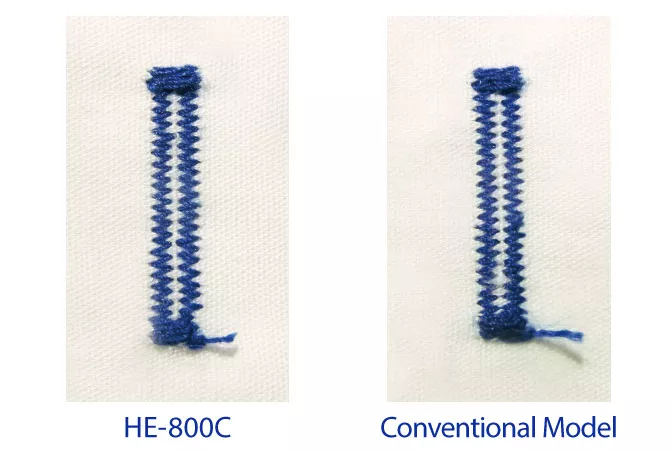 Beautiful bank sewing finish appears when you use pearl stitch with low thread tension due to modified parts and needle movement program. And, when you use whip stitch it may provide beautiful finish because it reduces any trouble such as thread breakage and stitch tightness errors. Minimum resolution is only 0.05mm. It gives high accuracy of button hole cutting and reduce any uneven finish.