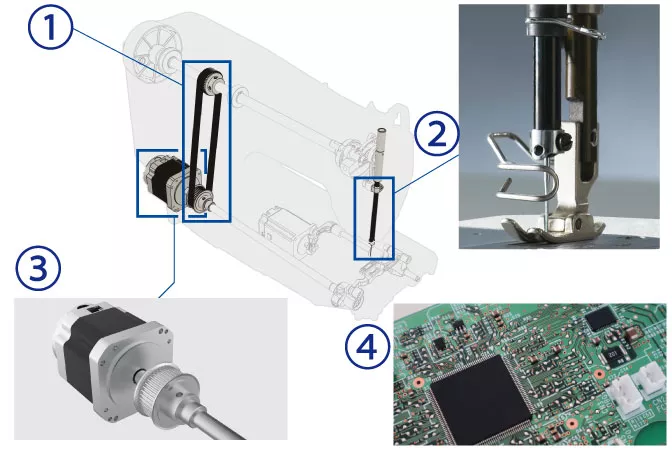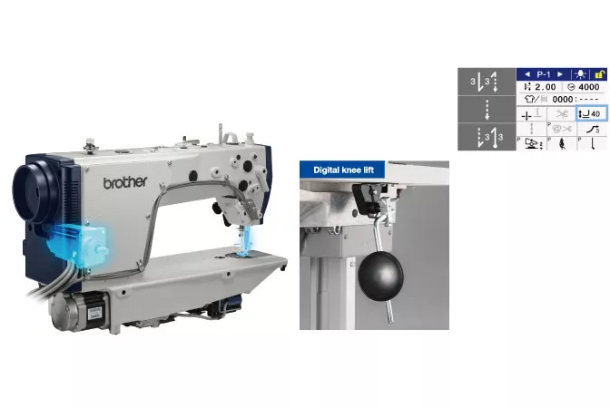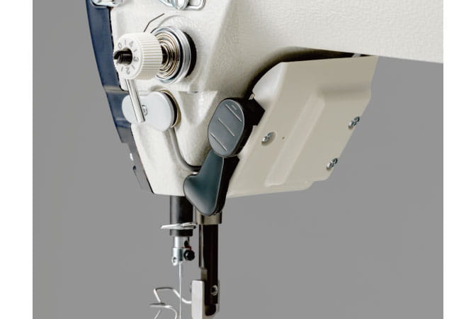 A stepping motor has been adopted for the presser foot lifting mechanism, making it quieter. This reduces stress for the worker and creates a more comfortable working environment. In addition, a digital knee lifting function has been installed, making the knee lifting motion lighter. This significantly reduces the burden on the worker, making them less tired even after long hours of work, helping to improve productivity.