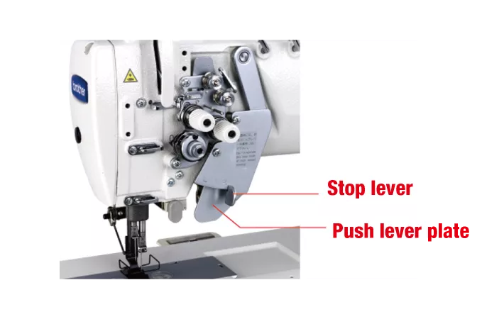 If you accidentally touch the stop lever (selection lever) during high speed sewing, you do not have to worry. The sewing machine is equipped with the safety mechanism which prevents the needle bar from falling out.