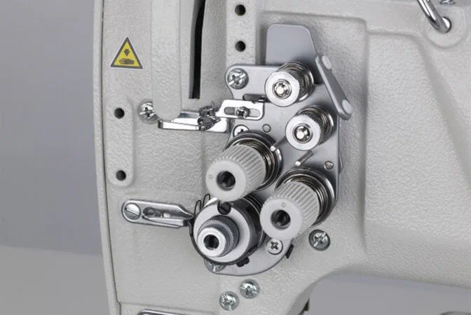 A function to switch between needle feed and lower feed is equipped as a standard function. Needle feed is effective in preventing uneven material feeding, and lower feed prevents puckering and is ideal for making quick and frequent turns. The operator can select the optimum feed method according to the material and the process, so that sewing quality can be increased.