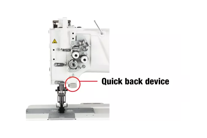 A function to switch between needle feed and lower feed is equipped as a standard function. Needle feed is effective in preventing uneven material feeding, and lower feed prevents puckering and is ideal for making quick and frequent turns. The operator can select the optimum feed method according to the material and the process, so that sewing quality can be increased.