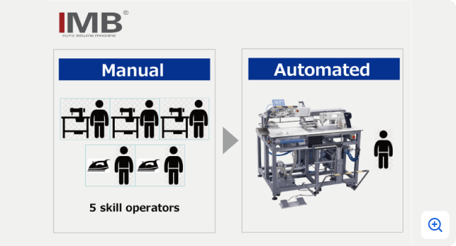 Automatic pocket attaching machine can reduce cycle time by 75% percent compared to manual operation.