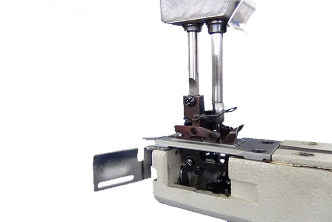 Se ha elegido un protector de agujas móvil para evitar que se salten puntadas. La sincronización del protector de agujas móvil y con la del mecanismo de alimentación están completamente coordinadas , así que no requiere ajustes ni cuando se cambia la longitud de la puntada. (Puede ser necesario realizar un reajuste de la posición del protector de agujas móvil según los materiales y los hilos).