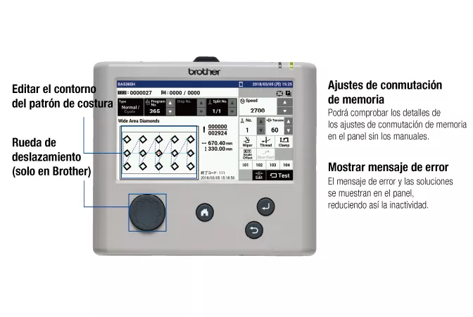 Detecta inmediatamente la clase de aguja que ha sufrido una rotura el hilo, reduciendo así las piezas de trabajo defectuosas.