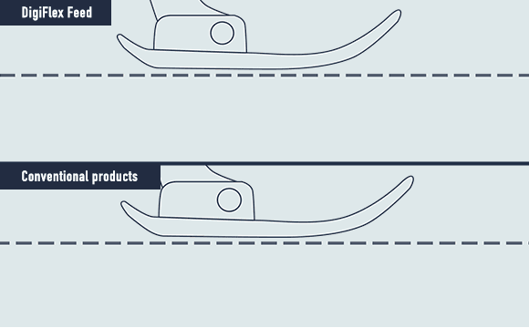 DigiFlex Feed allows you to select from four different trajectories to find the optimal timing for thread tightening depending on the fabric. This reduces the need to adjust the sewing machine every time the fabric is changed, and ensures consistent quality even in difficult processes that previously depended on the skills of the worker.