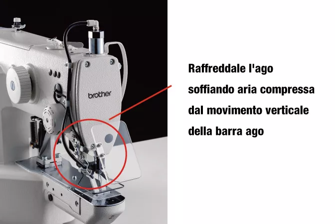 - ・Miglioramento produttività con la più alta velocità di cucitura al mondo nel settore, Raffreddamento Ago, ed IoT