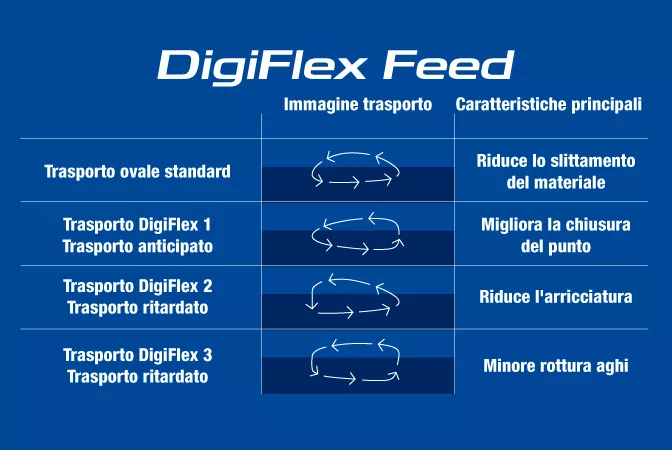 Il tessuto può essere trasportato con la giusta fase in modo da evitare la rottura dell'ago anche durante la cucitura di materiali spessi.