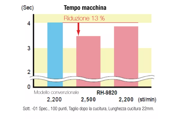 La più alta velocità di cucitura al mondo di 2,500 punti/min aumenta la produttività
