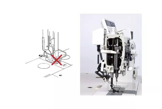 La funzione per passare dal trasporto a griffa ed ago al solo trasporto a griffa è standard. Il trasporto ad ago è ideale per prevenire il traporto non uniforme del materiale, ed il trasporto a griffa previene le arricciature ed è ideale per veloci e frequenti inversioni della cucitura. L'operatore può selezionare il trsporto ottimale in base al materiale ed all'operazione, aumentando al qualità della cucitura.
