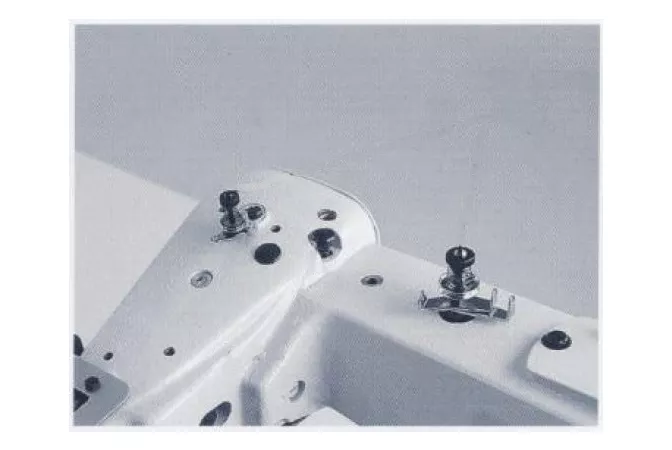 Chuyển đổi nhanh giữa đường may lỏng và chặt chỉ với một thao tác. Áp lực lò xo của bàn giữ vải có thể điều chỉnh dễ dàng bằng cần gạt. Đồng thời, khoảng hở giữa kim và móc chỉ cũng có thể chỉnh nhanh bằng cần gạt khi thay đổi số kim.