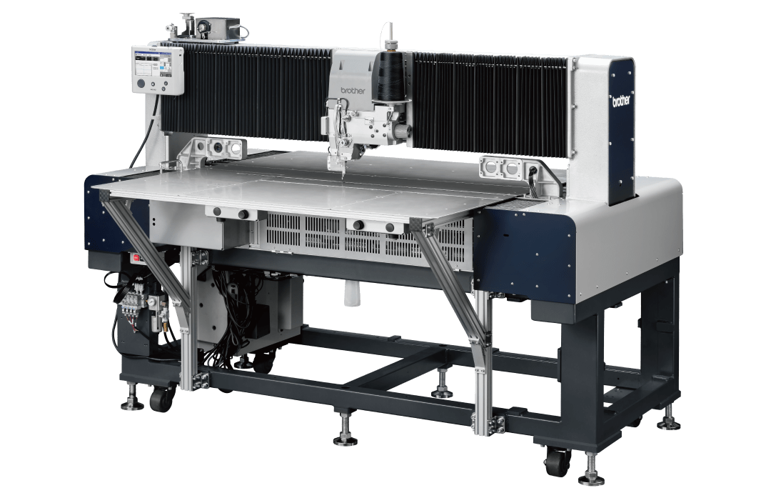 Bằng cách tối đa hóa vùng may nhờ dạng đầu máy di chuyển độc lập, giờ đây có thể may các tấm vật liệu lớn như túi khí - sản phẩm trước đây khó gia công. Ngoài ra, cơ cấu dẫn động độc lập theo trục XY giúp đạt độ chính xác may cao, cho phép thực hiện các đường may trang trí chất lượng cao trên ghế xe hơi, sản phẩm da, v.v.