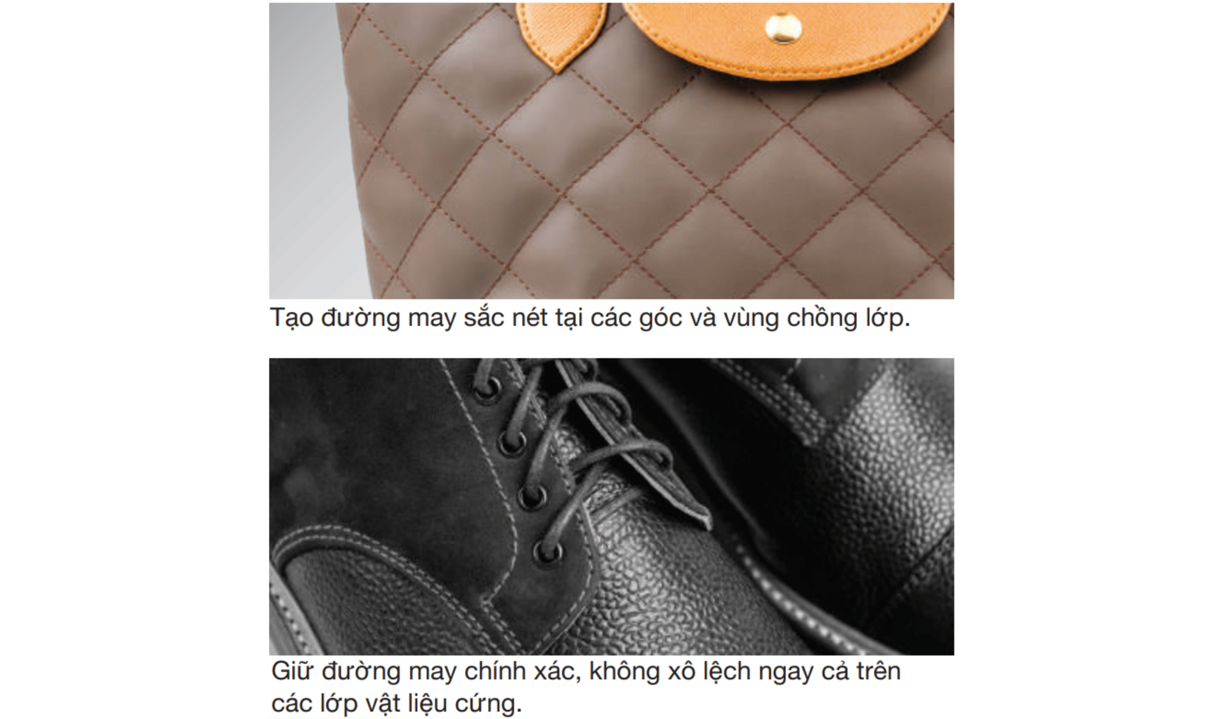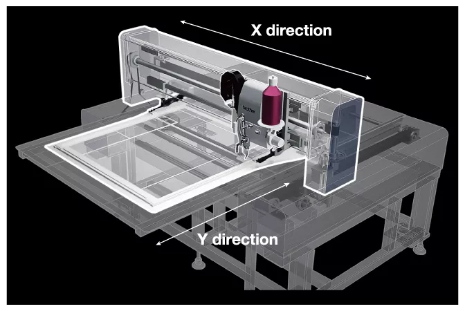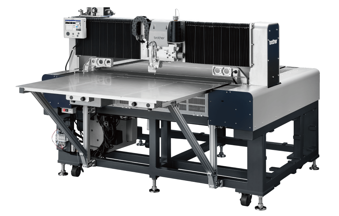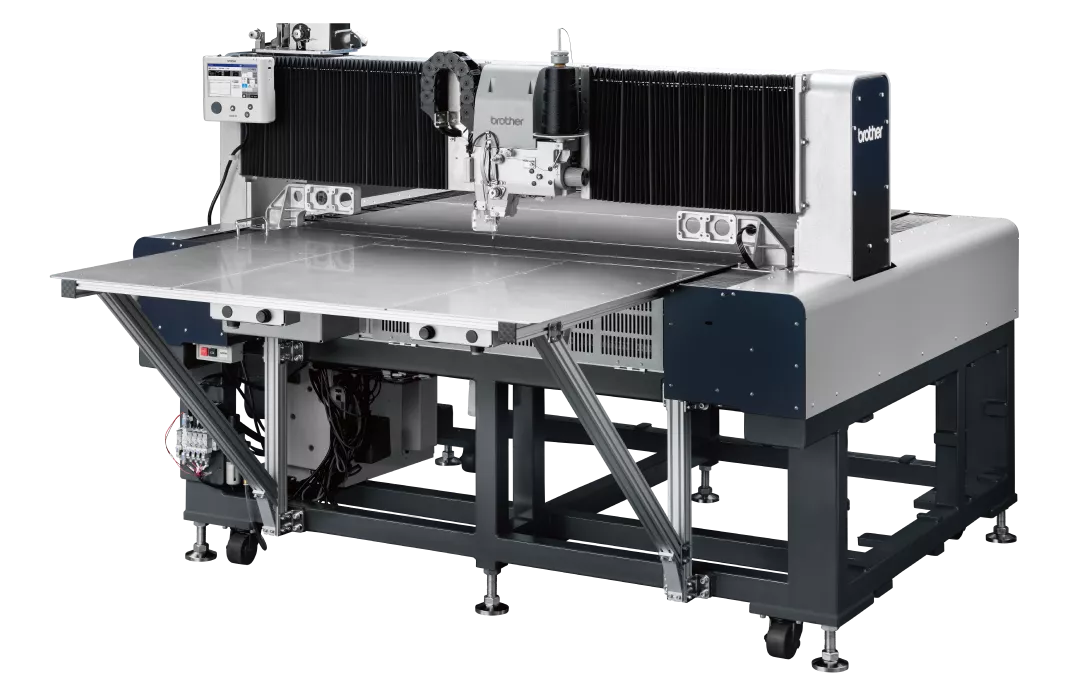 Bằng cách tối đa hóa vùng may nhờ dạng đầu máy di chuyển độc lập, giờ đây có thể may các tấm vật liệu lớn như túi khí – sản phẩm trước đây khó gia công. Ngoài ra, cơ cấu dẫn động độc lập theo trục XY giúp đạt độ chính xác may cao, cho phép thực hiện các đường may trang trí chất lượng cao trên ghế xe hơi, sản phẩm da, v.v