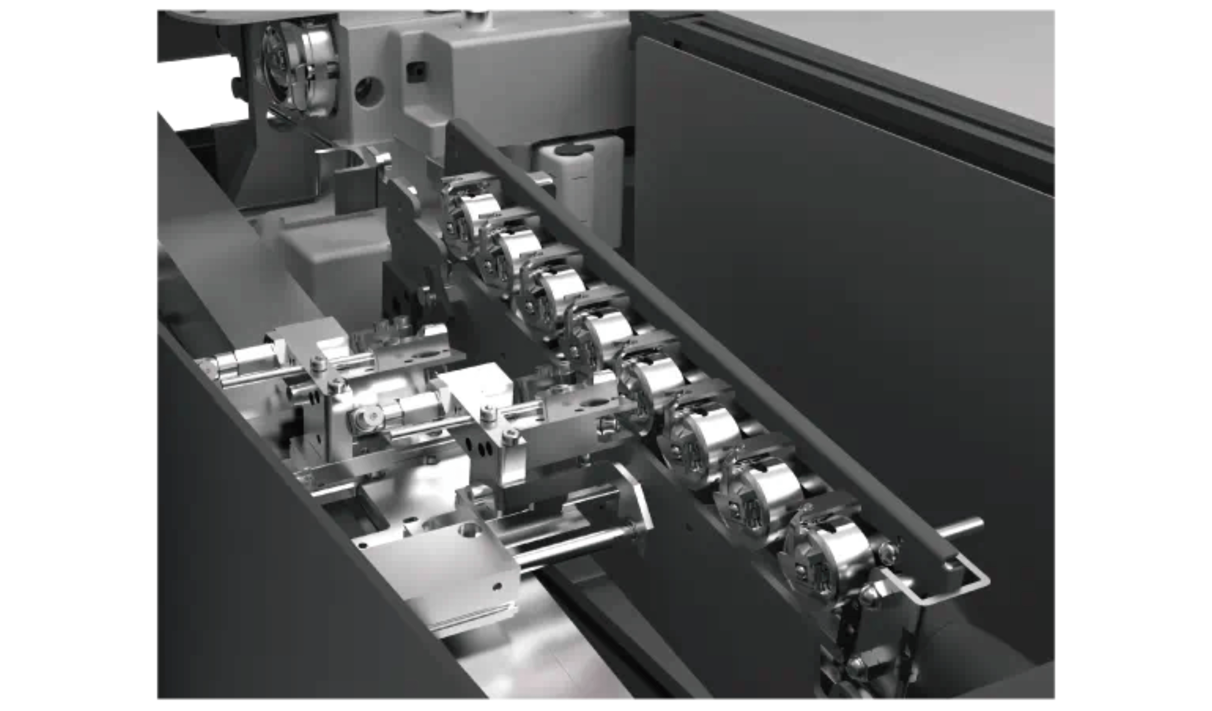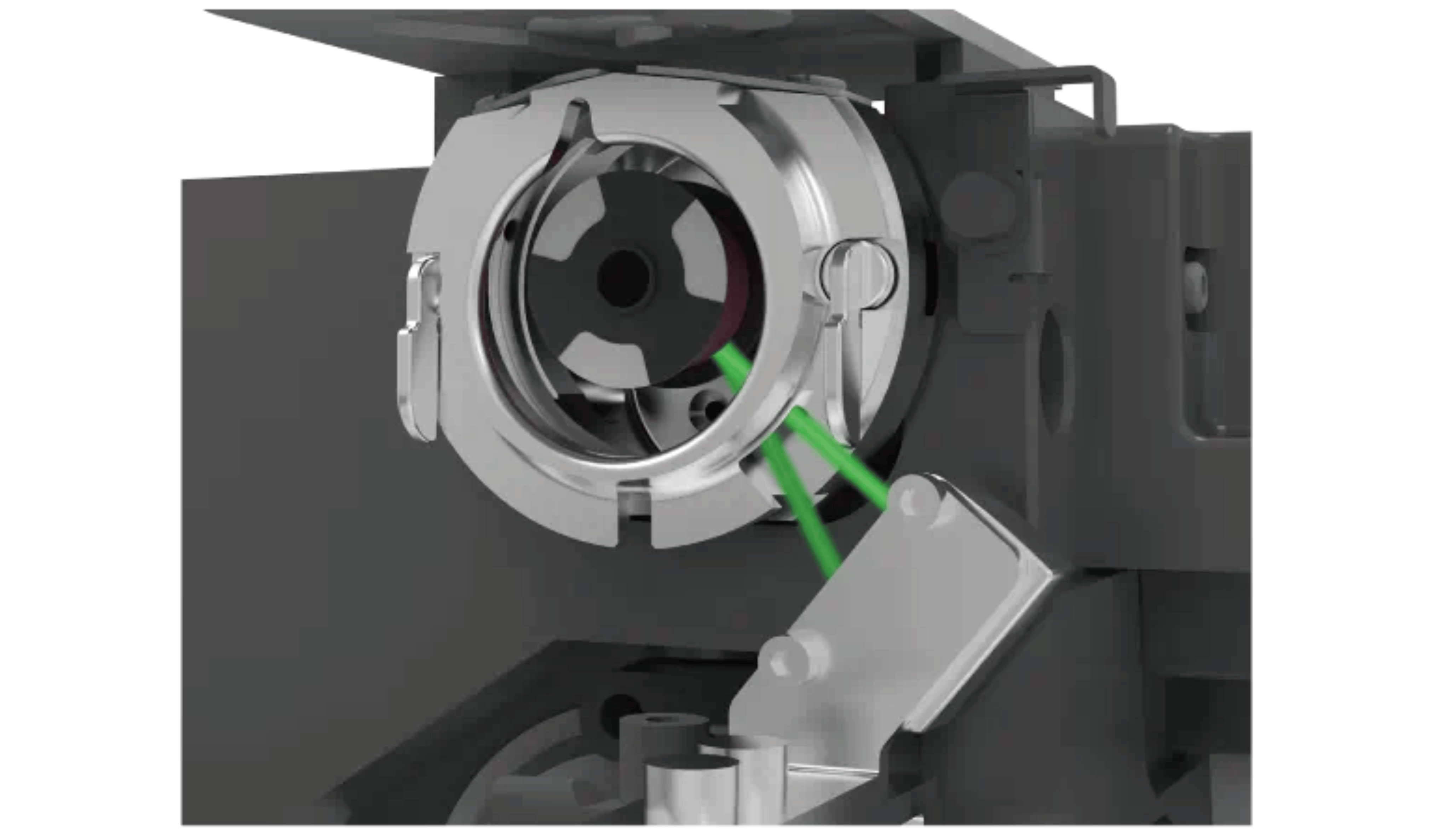 Nắp che khu vực bảo trì và thay chỉ suốt (có cảm biến đóng/ mở) được mở rộng, giúp thao tác thuận tiện hơn. Đồng thời, độ cao bề mặt làm việc giảm 50mm, cải thiện khả năng tiếp cận và giúp điều chỉnh dễ dàng hơn.