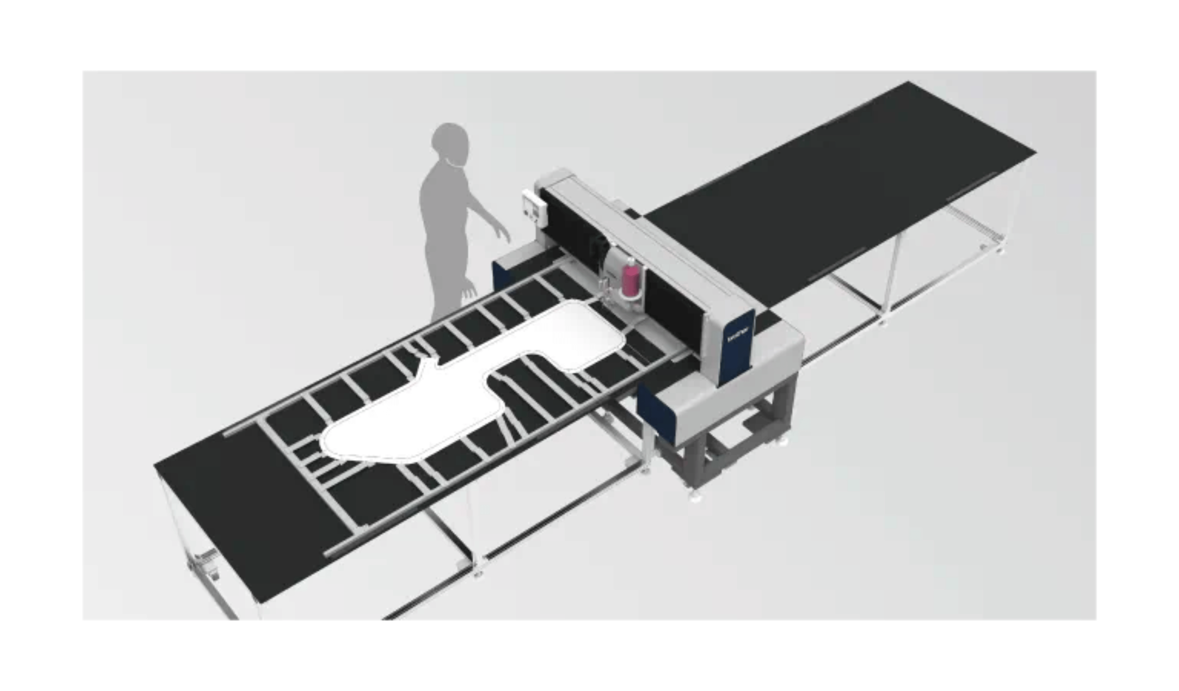 Bằng cách tối đa hóa cùng may nhờ dạng đầu máy di chuyển độc lập, giờ đây có thể may các tấm vật liệu lớn như túi khí - sản phẩm trước đây khó gia công. Ngoài ra, cơ cấu dẫn động độc lập theo trục XY giúp đạt độ chính xác may cao, cho phép thực hiện các đường may trang trí chất lượng cao trên ghế xe hơi, sản phẩm da, v.v.