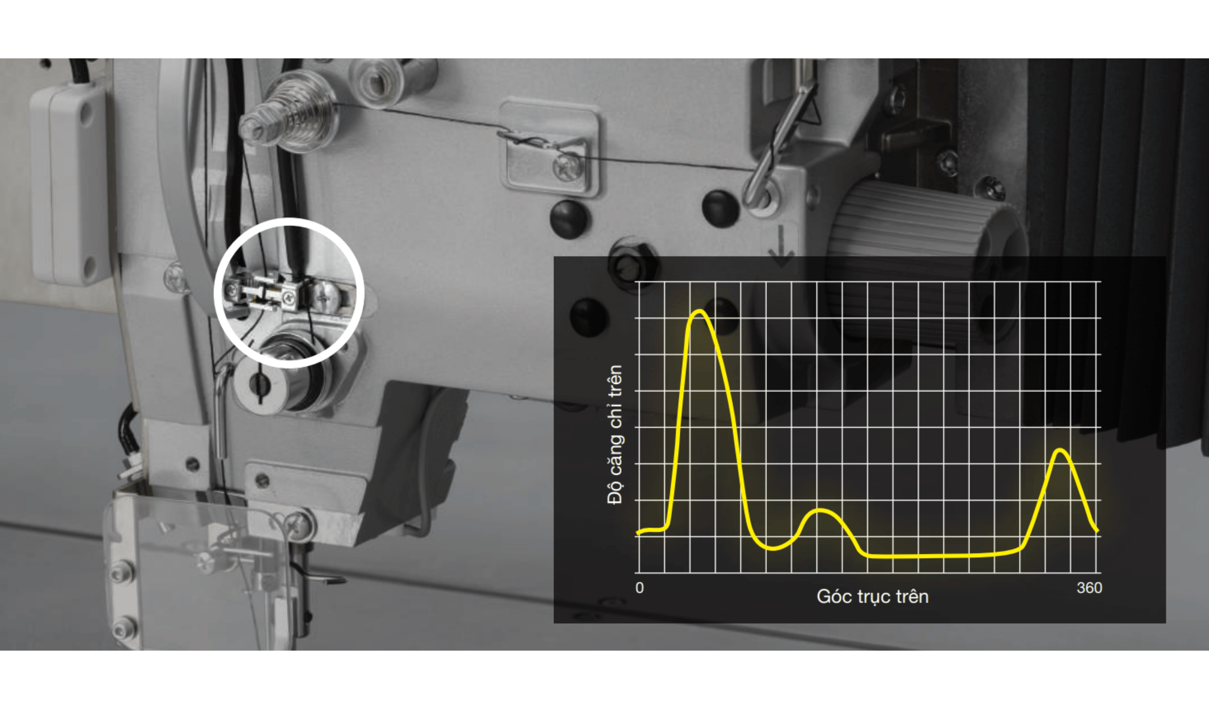 - ・Phát hiện bỏ mũi may, phát hiện đứt chỉ và linh hoạt theo dõi độ căng chỉ