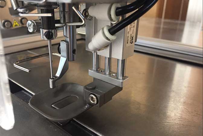 - Thiết bị này sẽ đè vải hoặc pallet ở gần trụ kim.